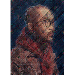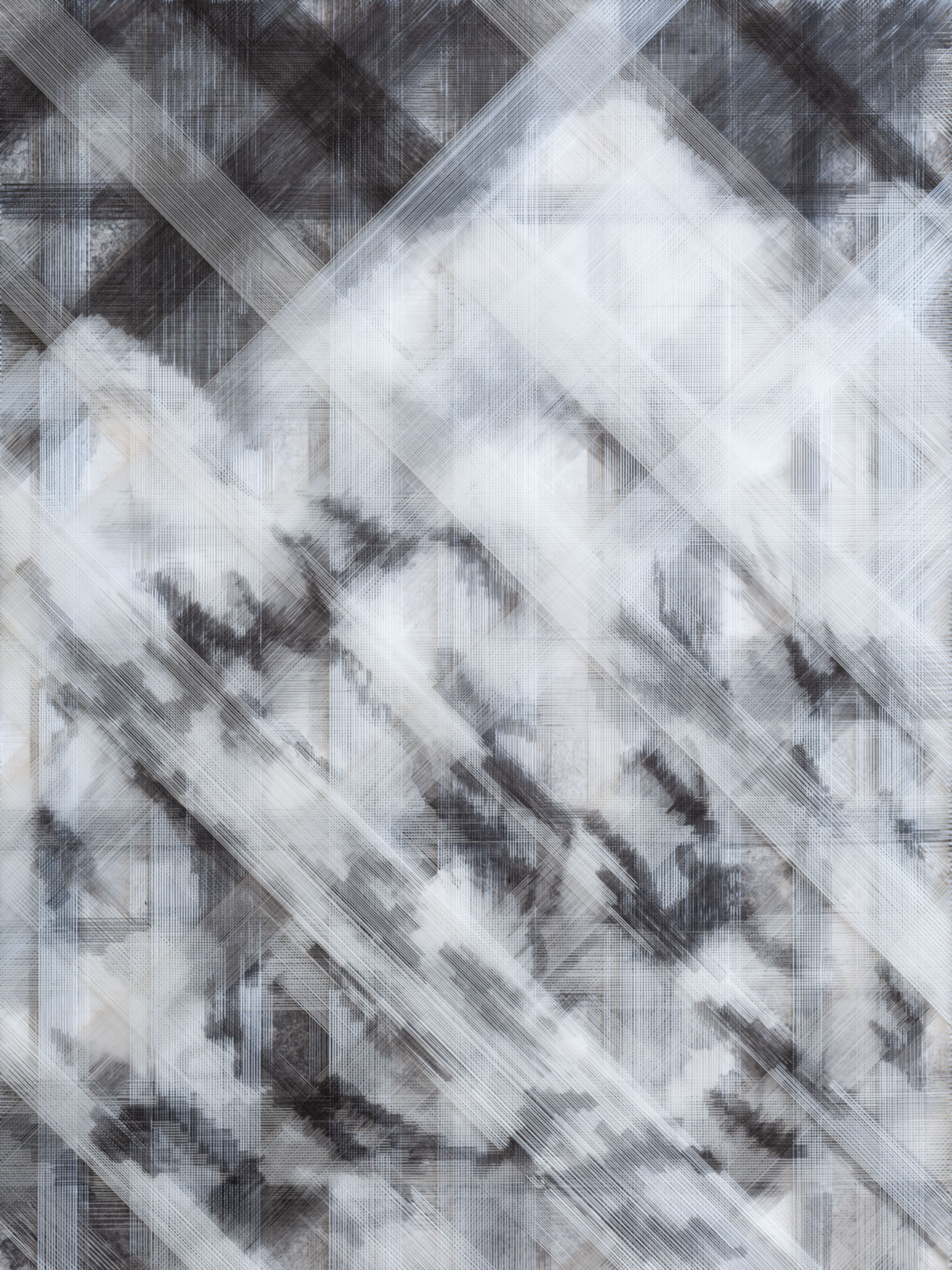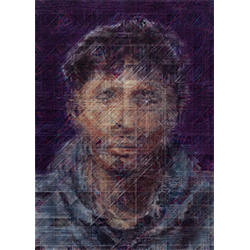 Gu Benchi's most recent series marks a significant evolution. Moving from pure geometric abstraction into portraiture, he applies his technique of multi-layered weaving, now across eight superimposed strata, to the human face. The shift was prompted by what the artist describes as a growing perception, in the aftermath of the global pandemic, of fracture and incommunicability in contemporary life. Citing Herbert Marcuse's One-Dimensional Man, he observes that "the beautiful vision of a global village and universal harmony has vanished like a dream in an instant."