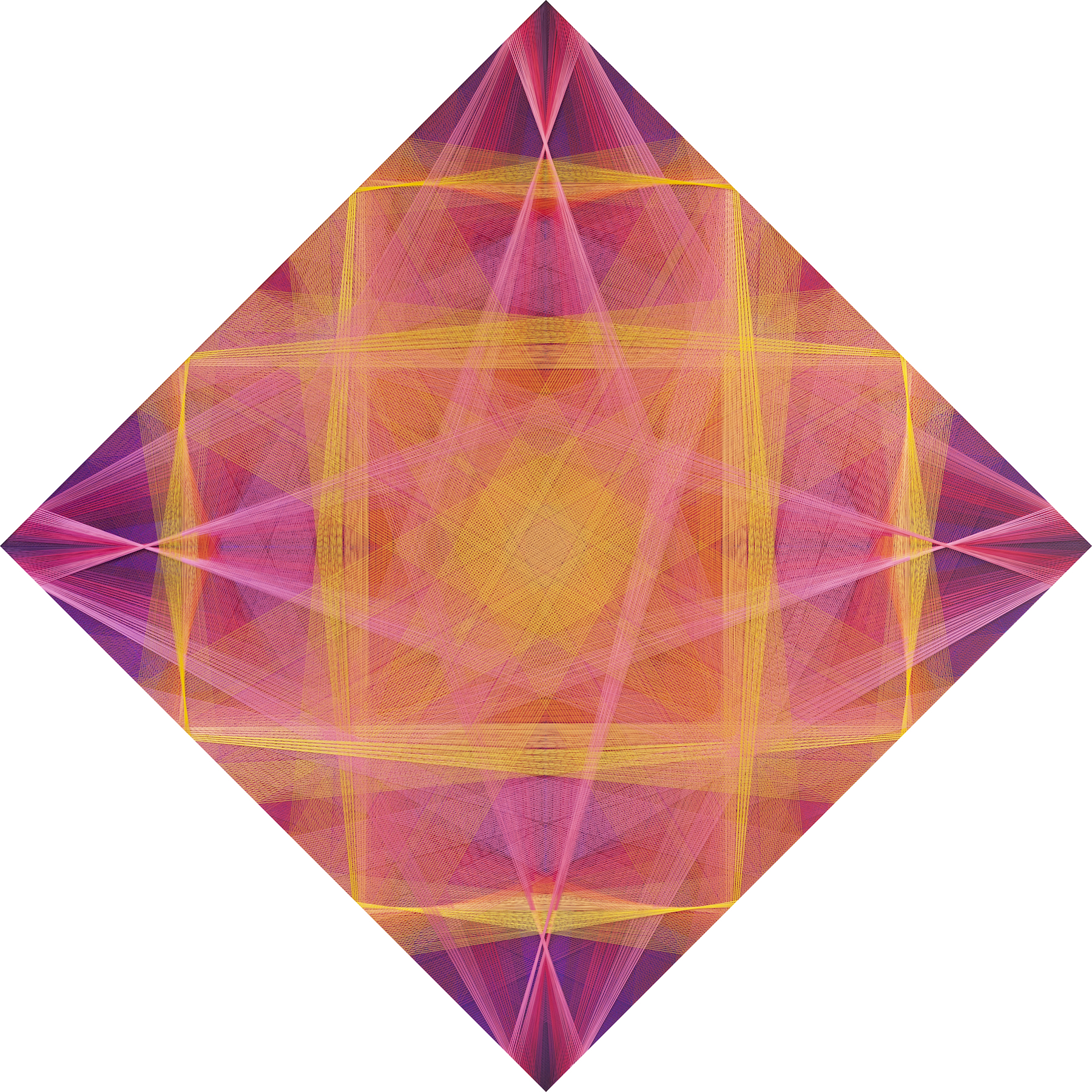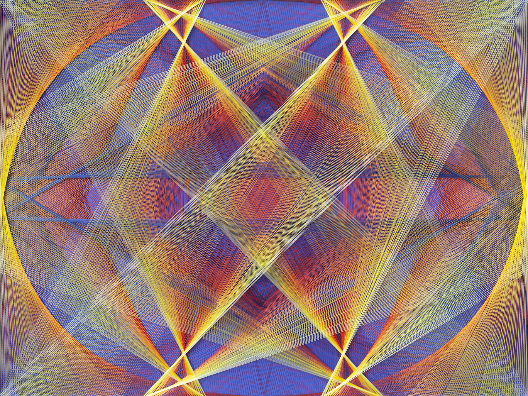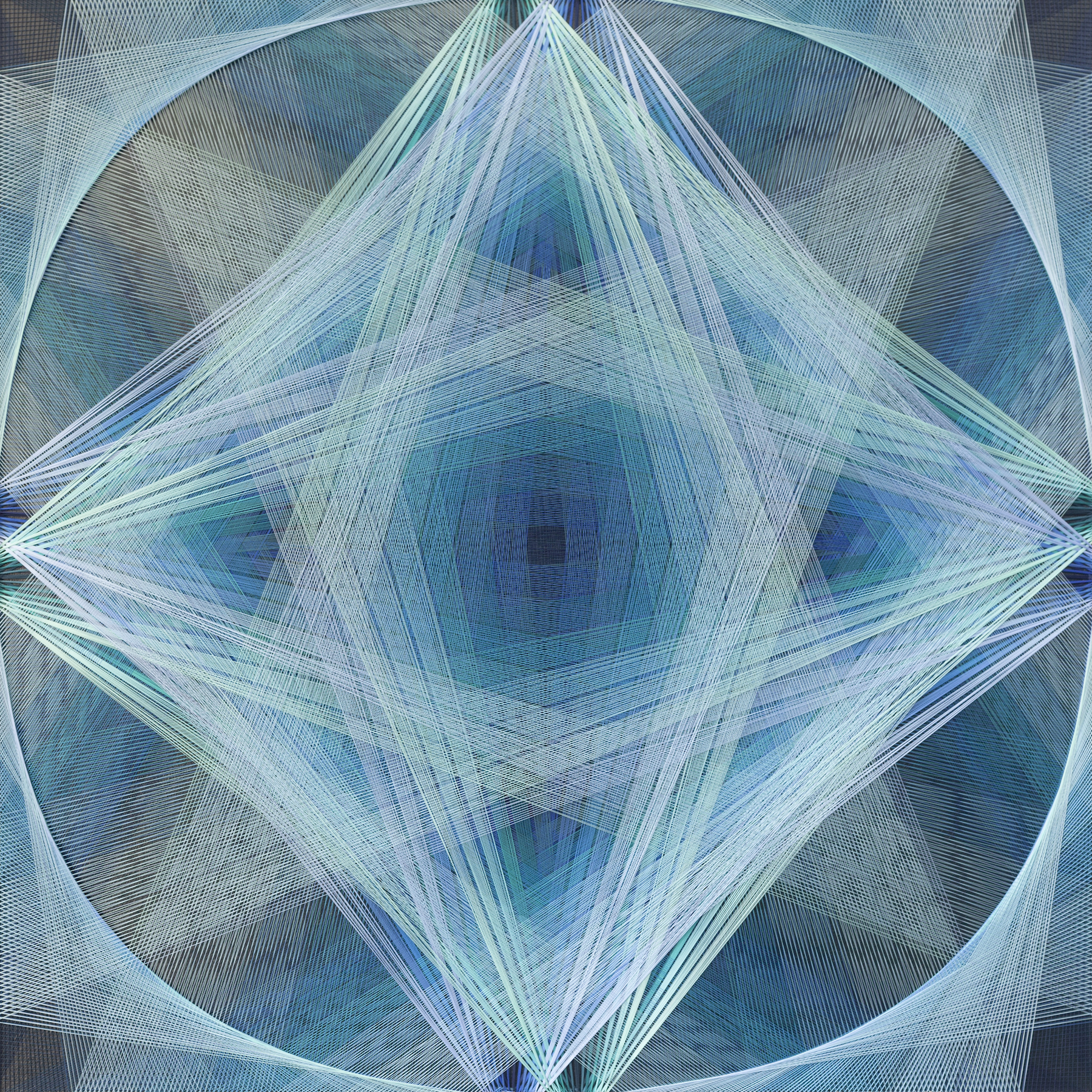 Gu Benchi's works hold together what might otherwise seem irreconcilable: the rigor of mathematical planning and the freedom of intuitive improvisation; the synthetic precision of industrial polyester and the spiritual aspirations of Buddhist contemplation; the austere geometries of Western modernism and the cosmological structures of Eastern religious art. What unites these poles is the discipline of repetition itself, a commitment to slow, embodied labor that refuses the accelerating rhythms of the digital age. In a cultural moment defined by fragmentation, distraction, and the erosion of sustained attention, the works propose an alternative temporality: one measured not in scrolls and clicks, but in the patient accumulation of thread upon thread, layer upon layer, breath upon breath.